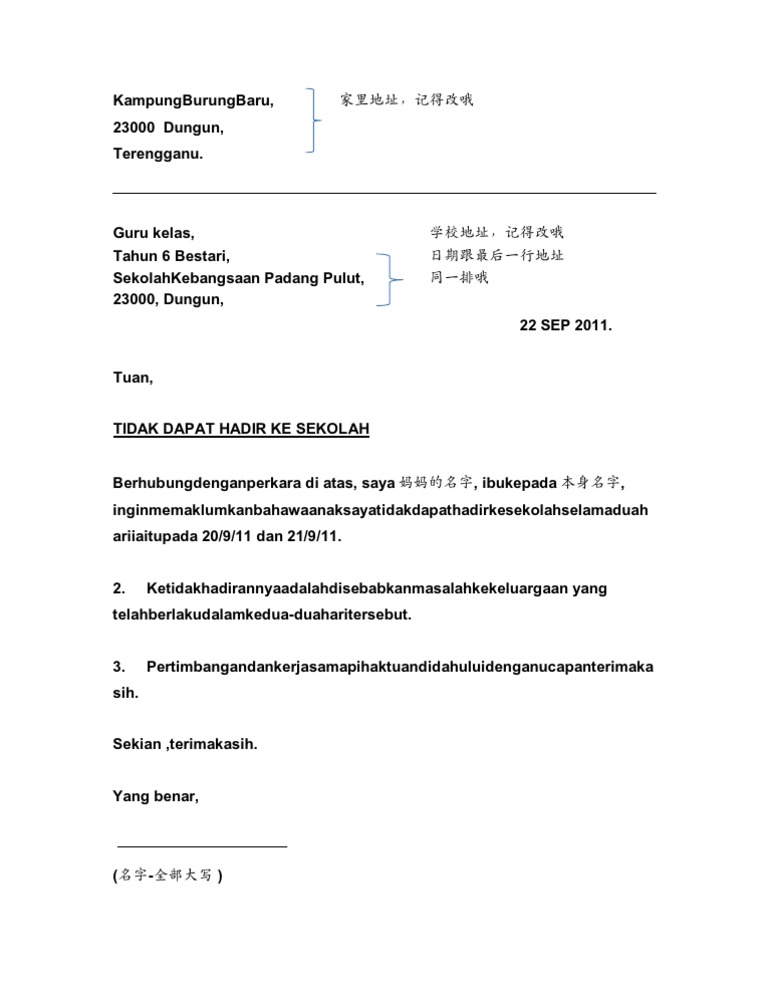 Surat Tidak Hadir Ke Sekolah Yang Mudah Dan Ringkas Azhan Co